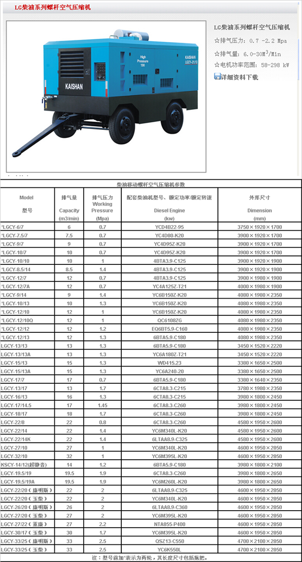 開山牌電動(dòng)柴動(dòng)螺桿式空壓機(jī)