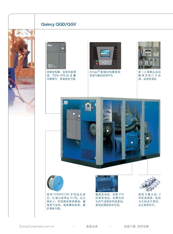 昆西QGV QGV系列變頻螺桿式空氣壓縮機(jī)30--90KW